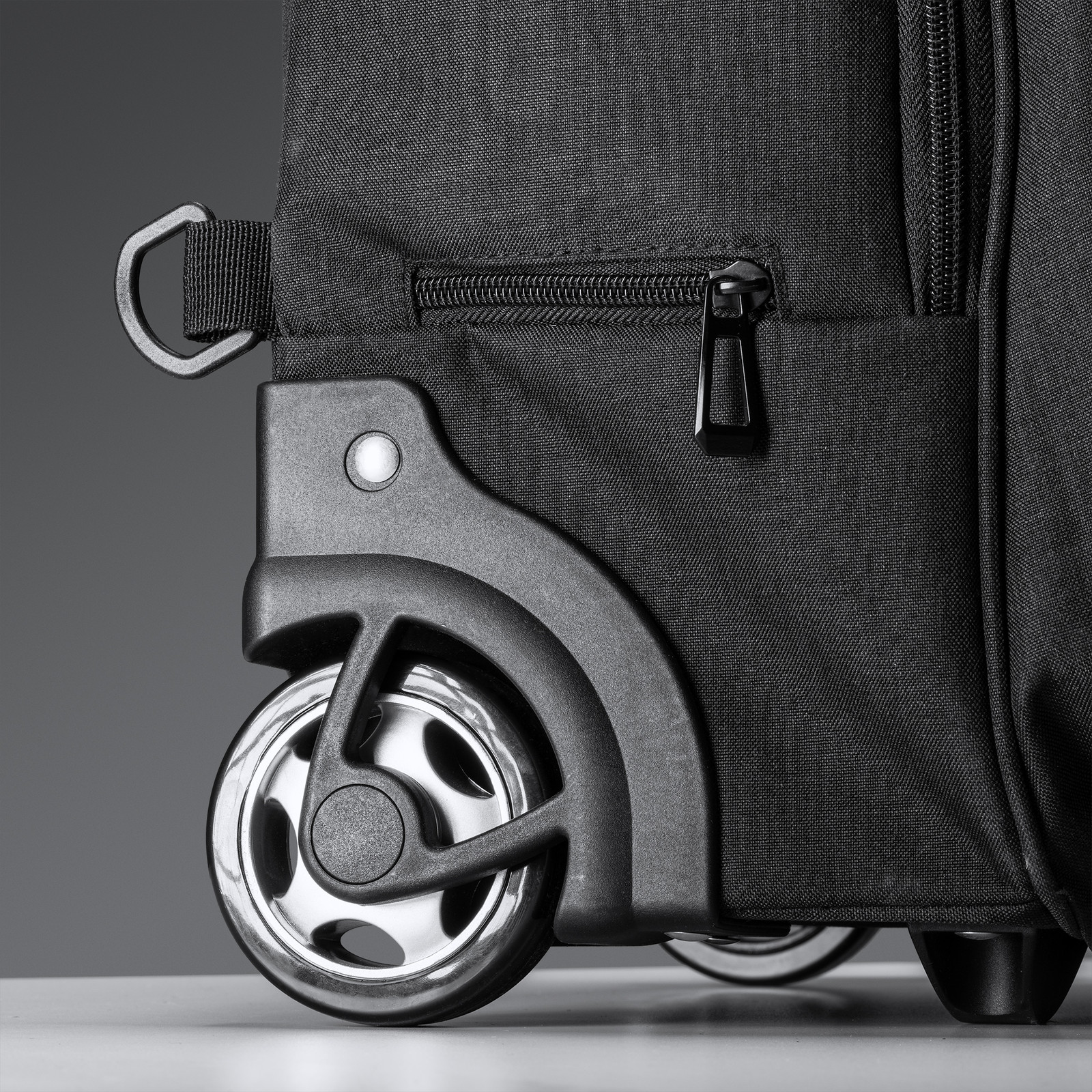 Zaino trolley in poliestere mélange 300D. Tasca principale con scomparto imbottito porta computer fino a 15’’. Due tasche con scomparti interne e una tasca frontale. Spalline imbottiti regolabili. Dimensioni: cm 33,5x51x21. Imballo: 4pz.