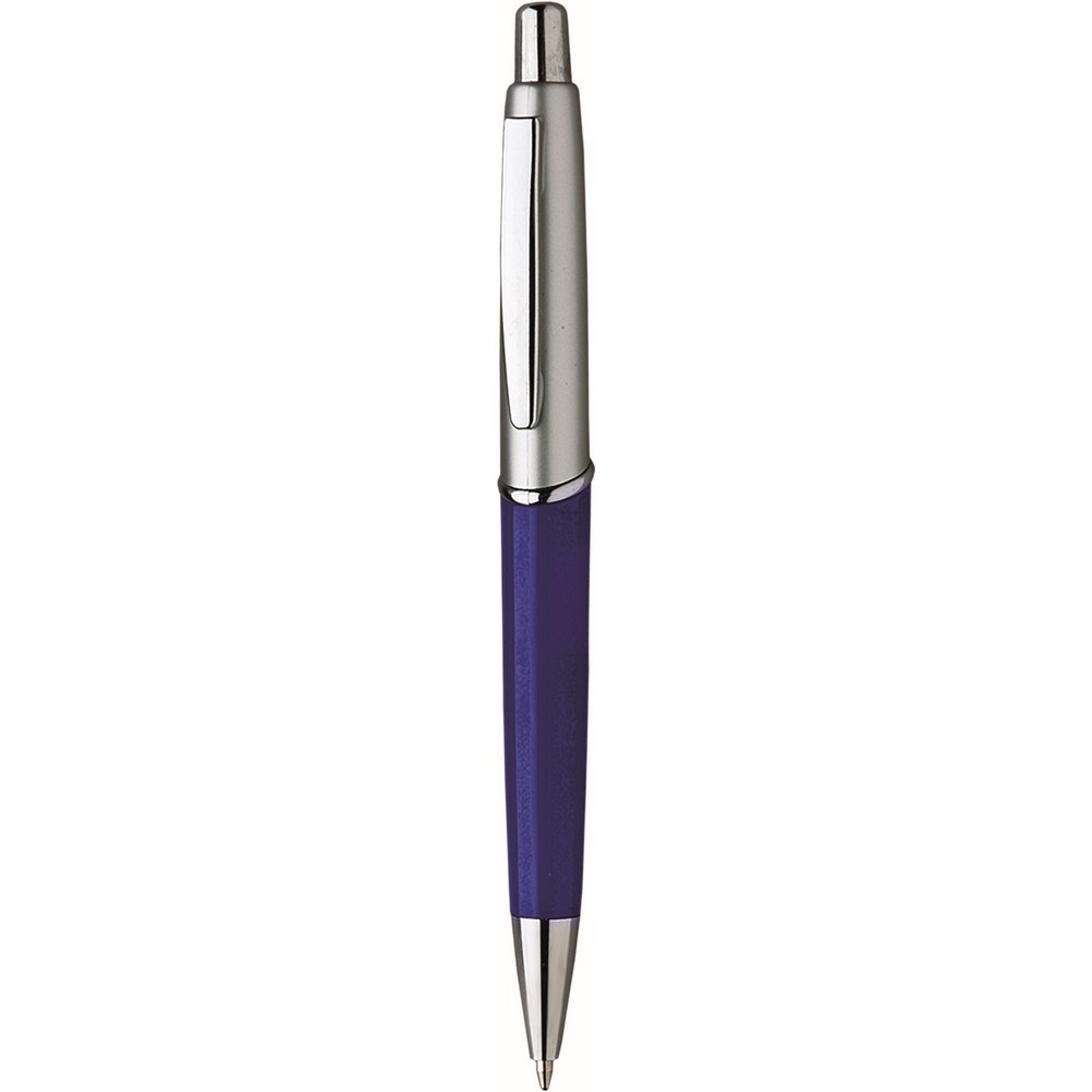 Penna sfera a scatto in plastica con clip di metallo. Fusto colorato e silver. Refill nero. Colori: vedi catalogo/sito. Imballo: 1000xcolore
