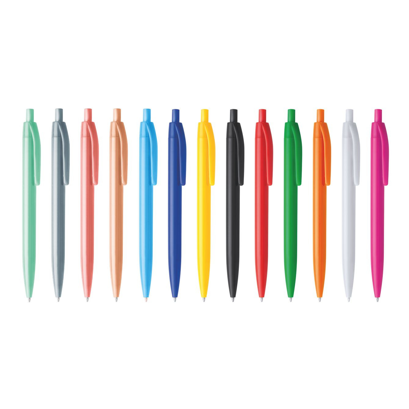 Penna a sfera in plastica. Clip in plastica. Refill Nero. Dimensione: cm 13,8. Confezione: polybag