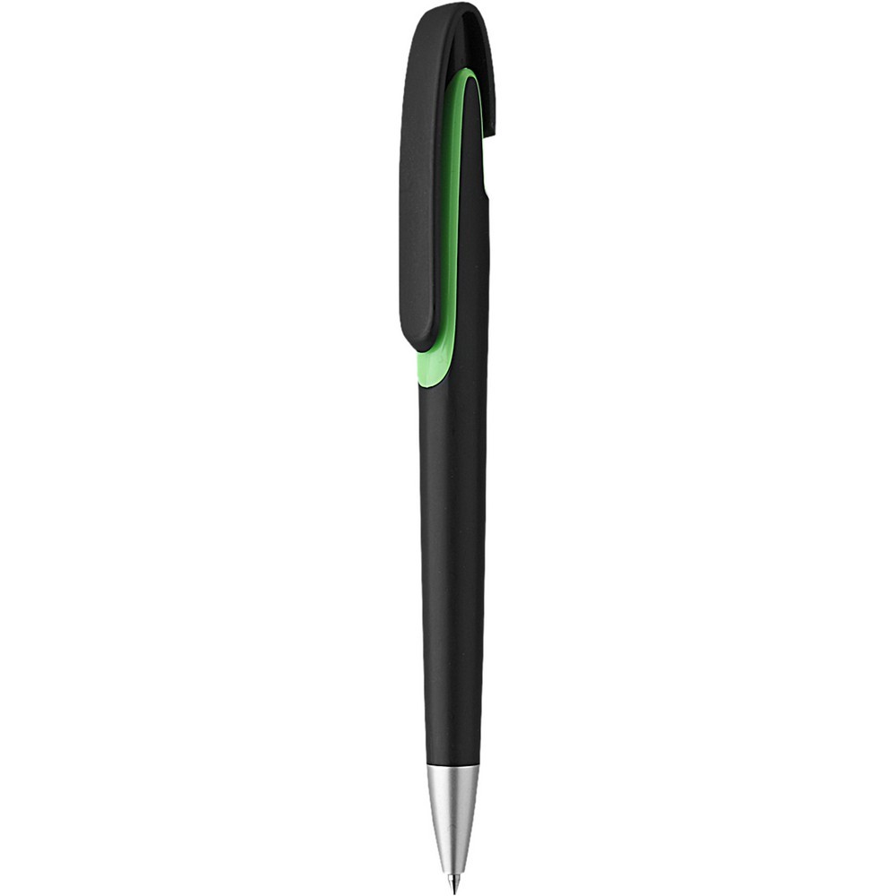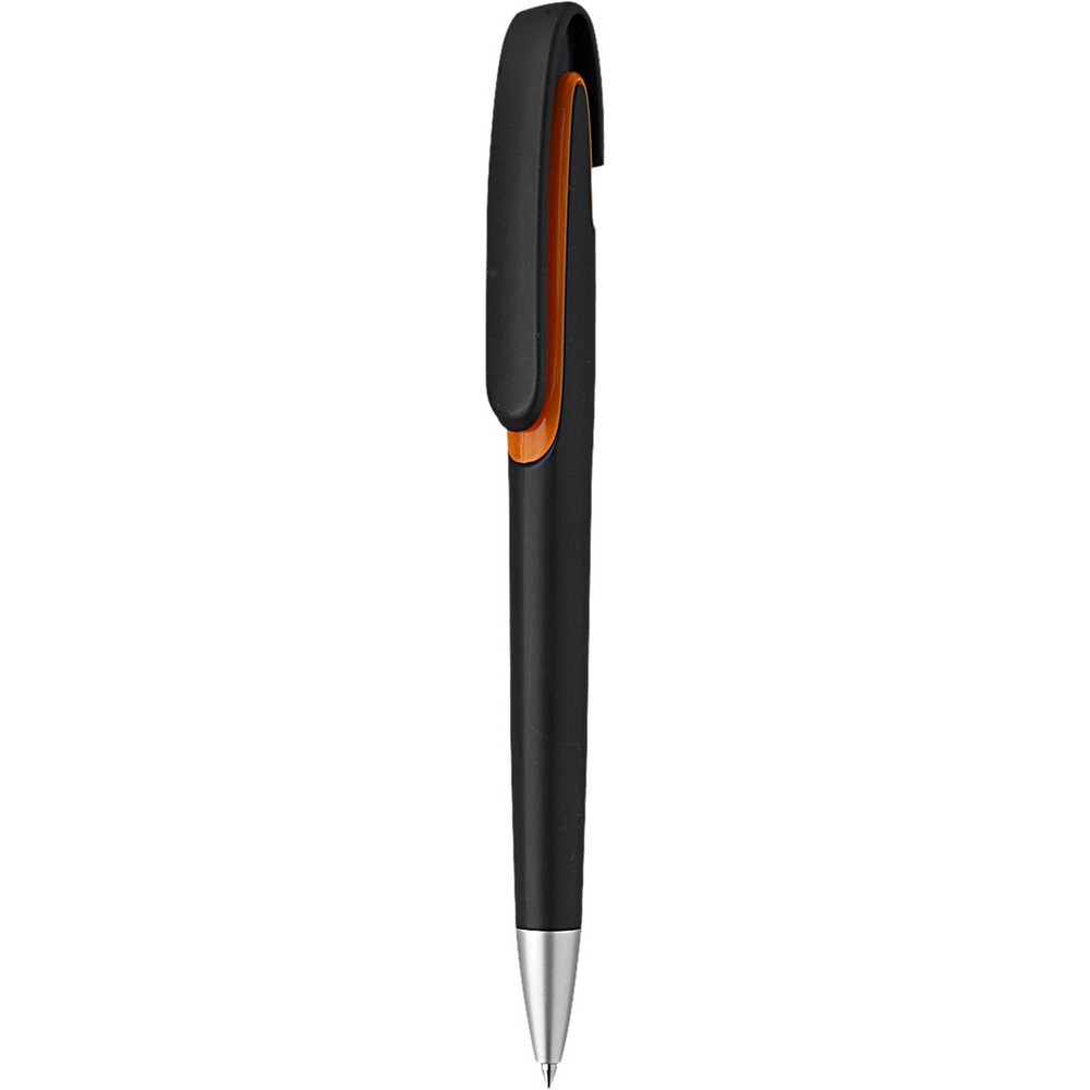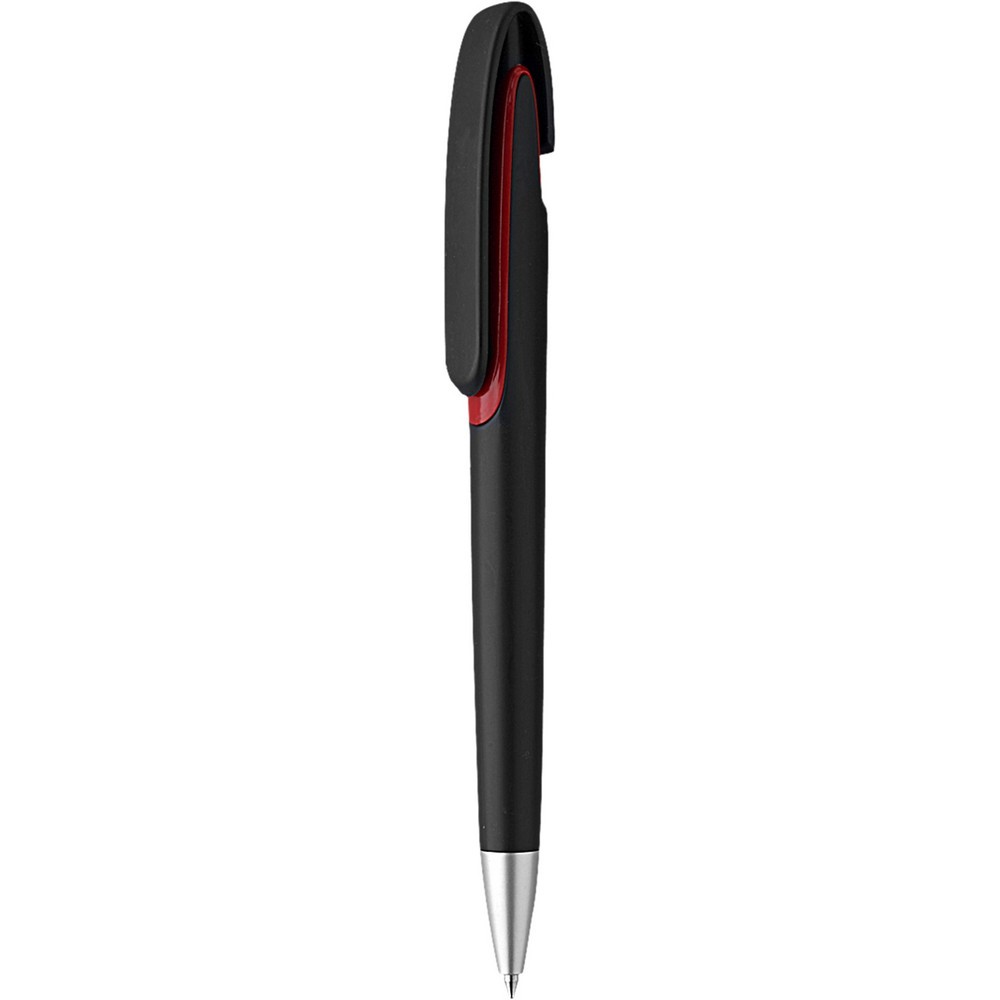 Penna sfera a scatto in plastica con clip in plastica. Fusto nero particolari colorati. Refill nero. Colori: vedi catalogo/sito Imballo: 1000xcolore