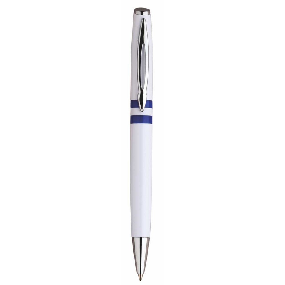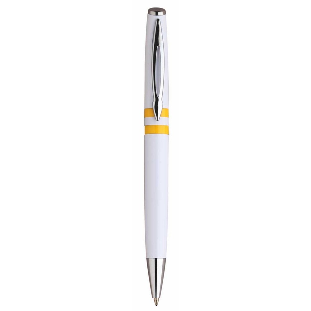 Penna sfera a scatto rotante in plastica con clip metallo. Fusto bianco particolari colorati. Refill nero. Colori : vedi catalogo/sito. Imballo: 1000xcolore