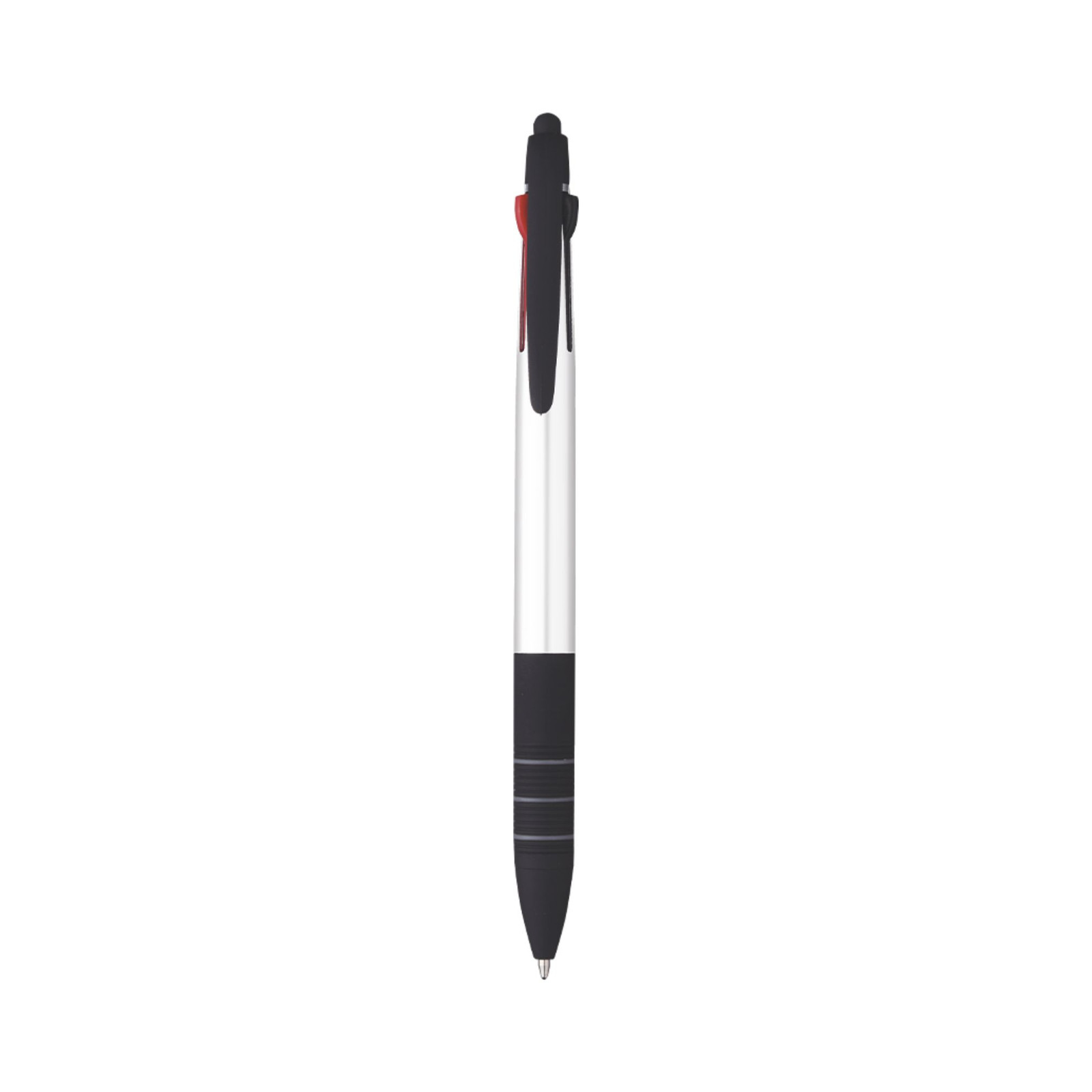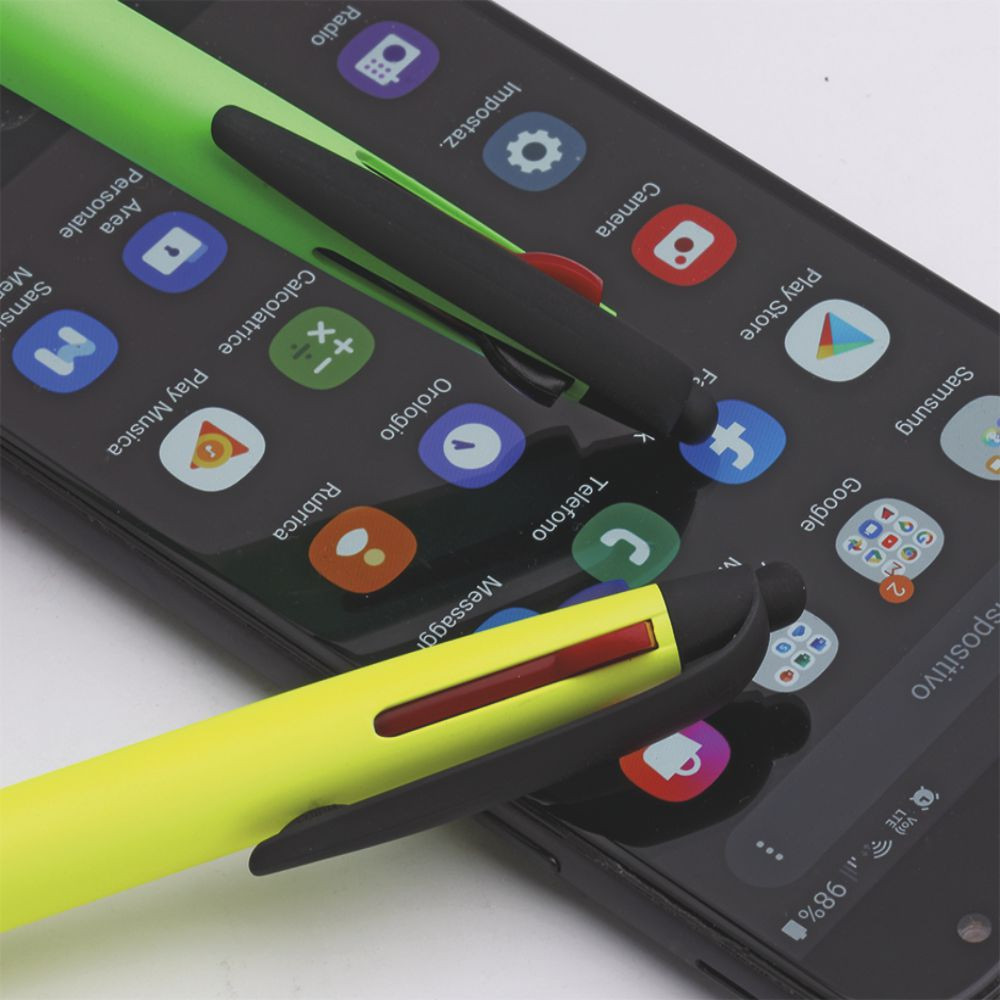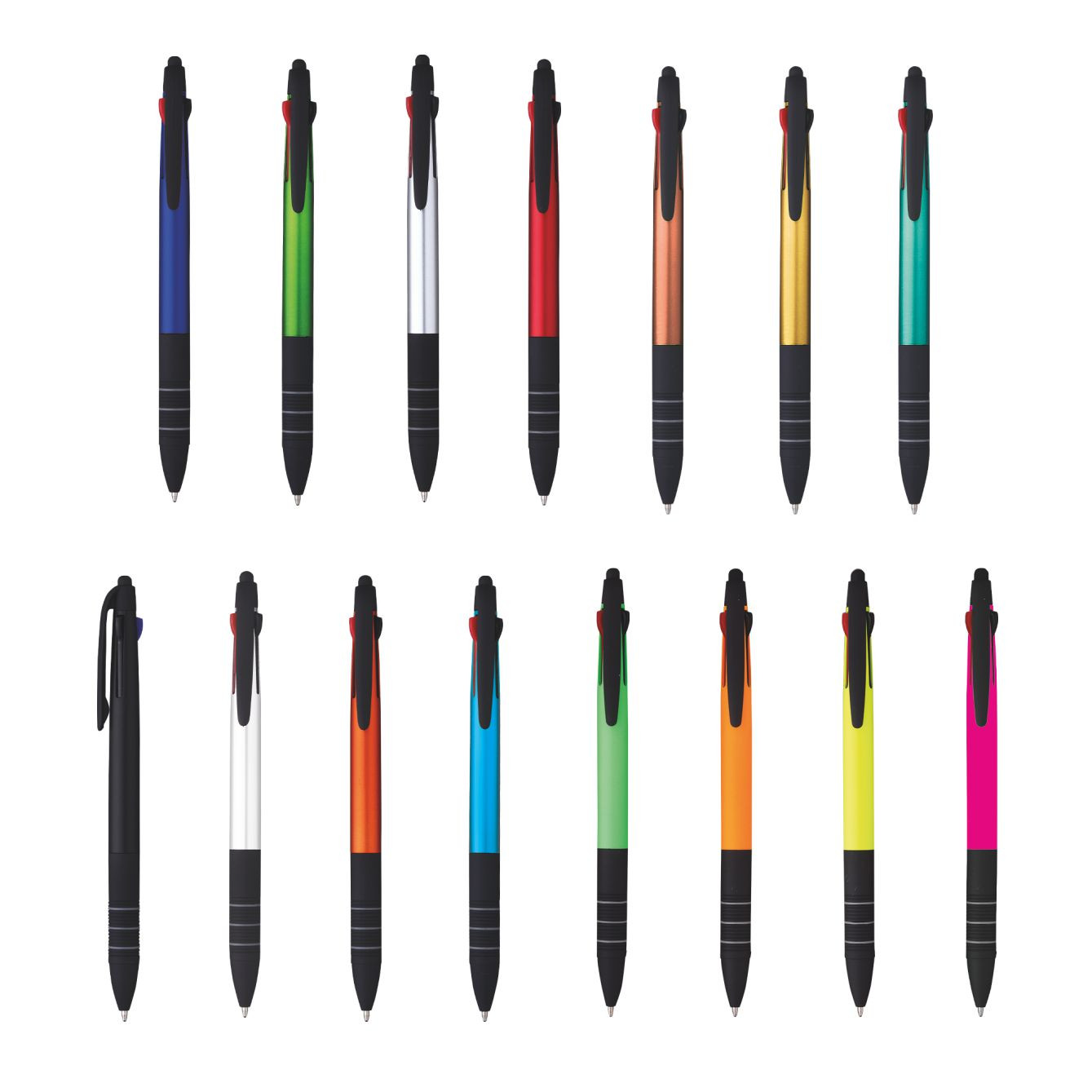 Penna sfera a scatto, touch, in plastica. 3 refill: blu, nero e rosso. Clip in plastica. Colori: vedi catalogo/sito. Imballo: 1000xcolore