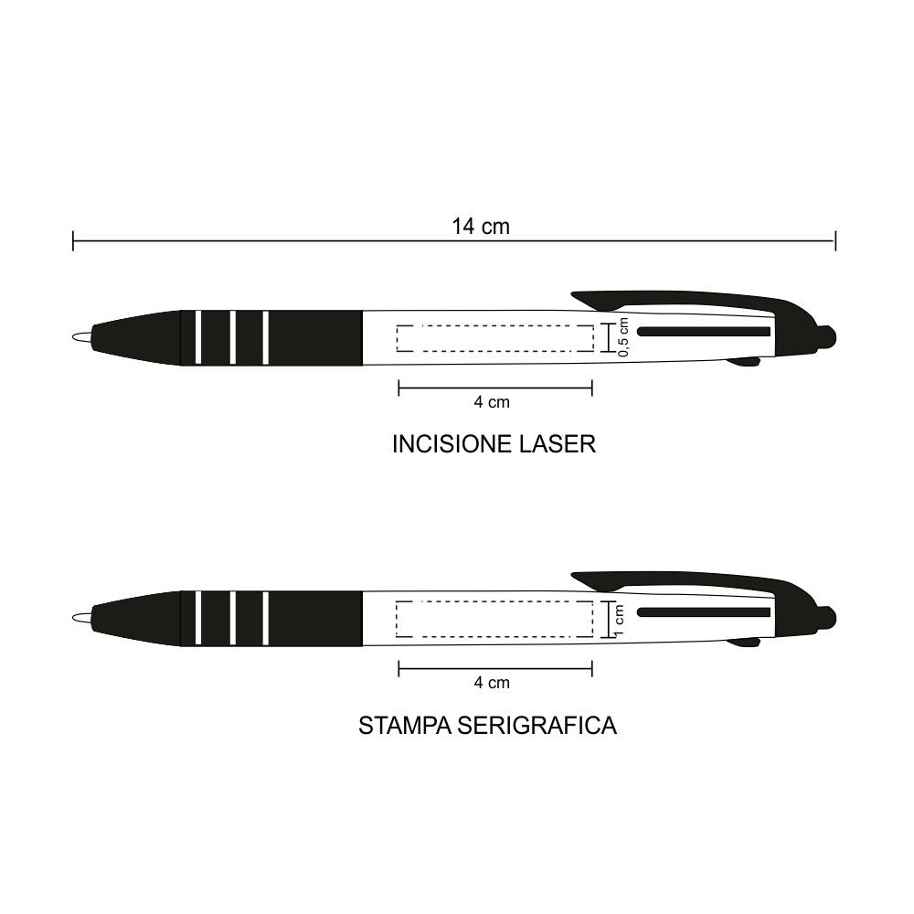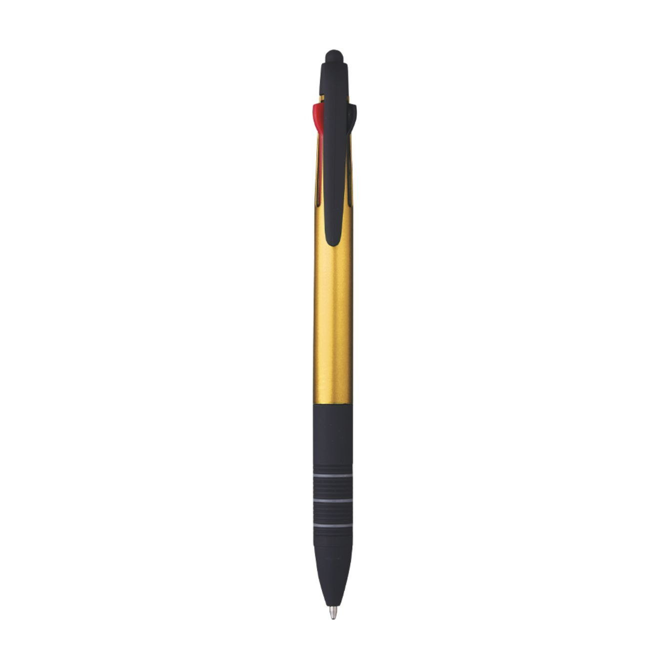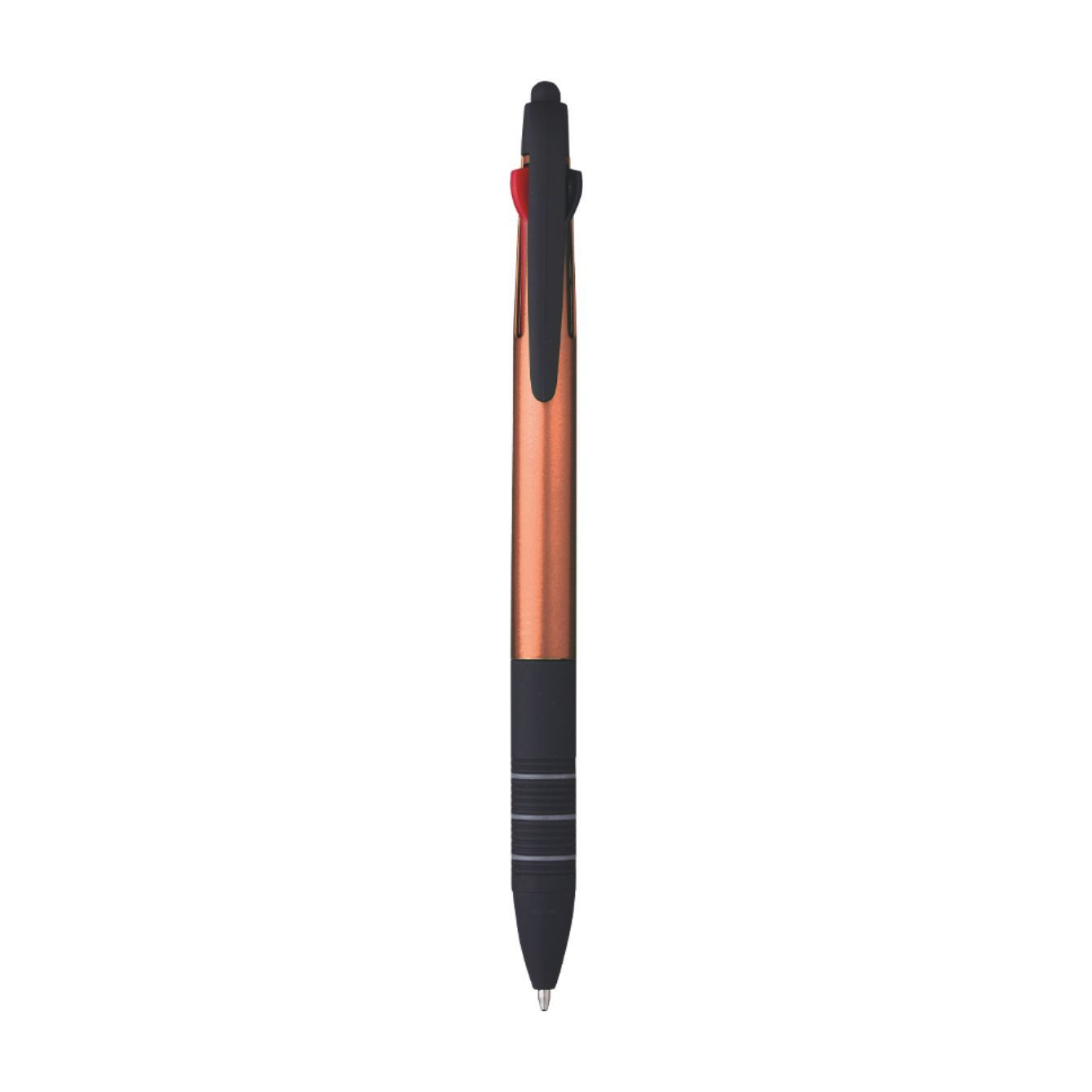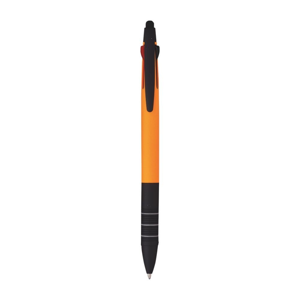 Penna sfera a scatto, touch, in plastica. 3 refill: blu, nero e rosso. Clip in plastica. Colori: vedi catalogo/sito. Imballo: 1000xcolore