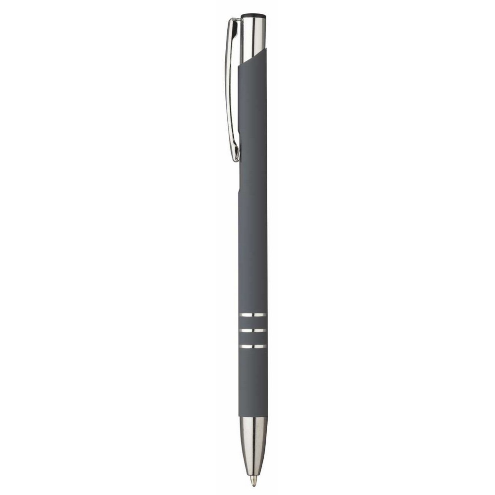 Penna soft touch slim. In rubber. Clip in metallo. Fusto colorato. Refill nero. Colori: vedi catalogo/sito. Imballo: 500xcolore