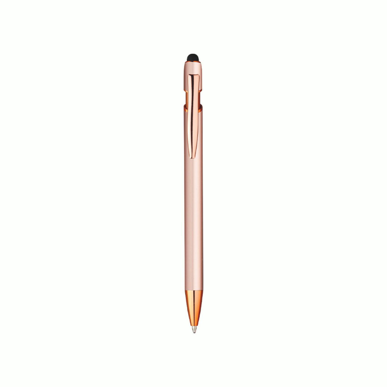 Penna in alluminio con finitura rubber con clip in alluminio. Con incisione laser sul fusto, il logo si mostrerà nel colore oro. Refill nero. Dimensioni: 14,5cm. Imballo: 500pz.