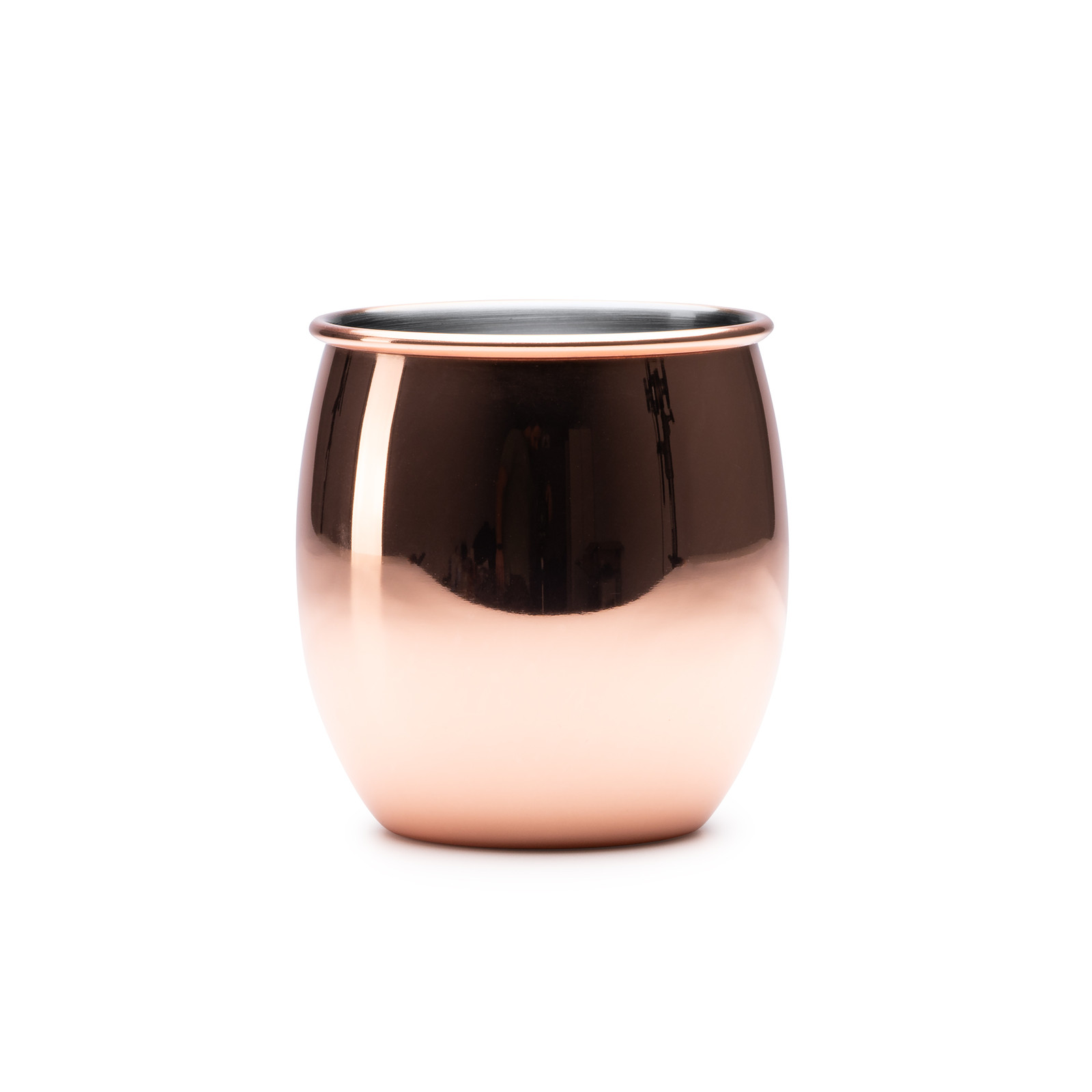Tazza in acciaio inossidabile da 500ml con rivestimento esterno in rame che contribuisce a mantenere più a lungo la temperatura delle bevande. Confezione in scatola di design ecologico. Dimensioni: cm 10x9Ø