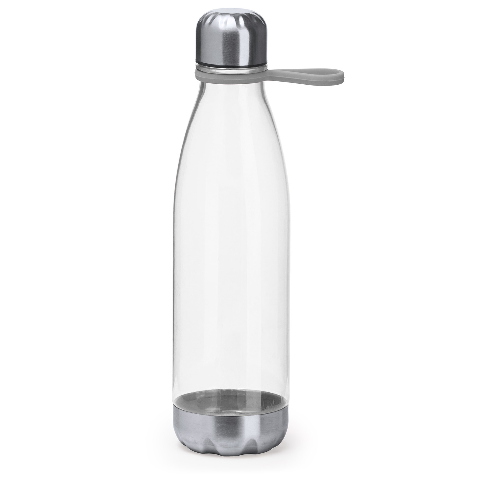Borraccia da 700ml con finitura AS trasparente. Tappo e base in acciaio inox. Presentata in scatola.