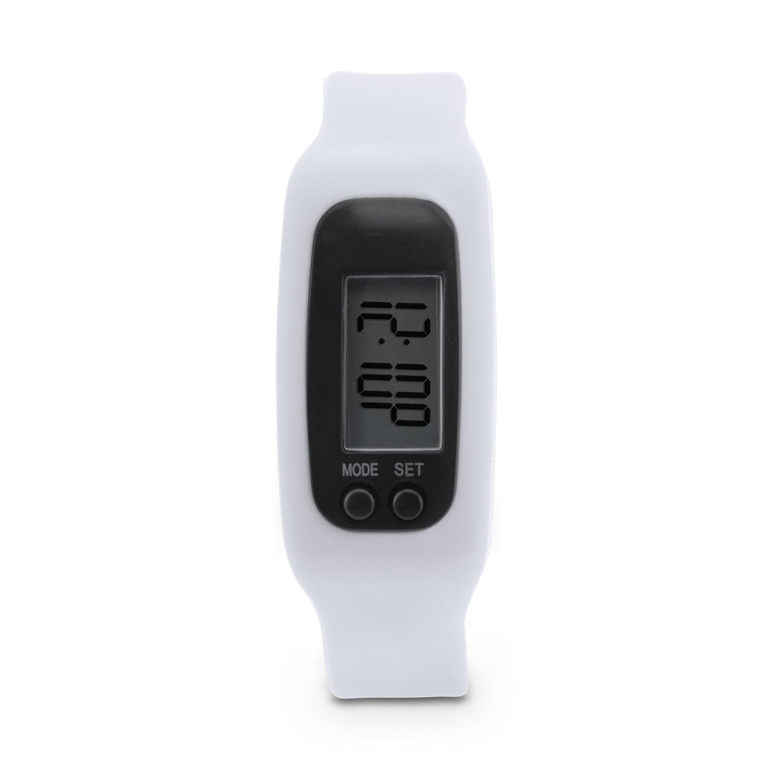 Orologio multifunzione con display LCD e cinturino regolabile in silicone. Batteria inclusa. Presentato in pratico astuccio trasparente ideale per la stampa. Imballo: 100pz.
