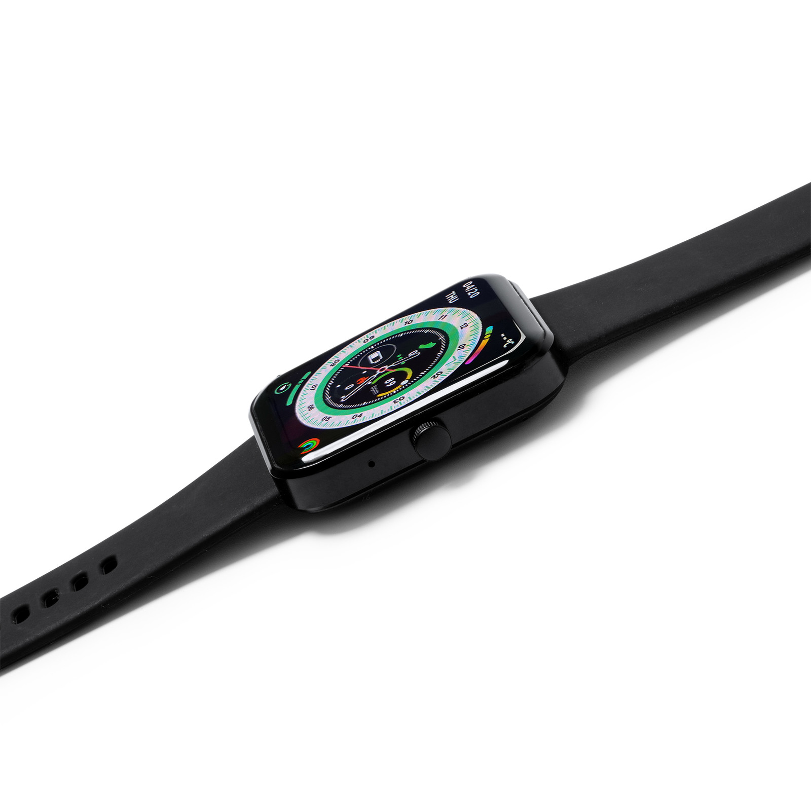 Smartwatch con quadrante con finitura metallica e cinturino in silicone. Schermo touchscreen IPS da 1,89”. Resistente all’acqua e alla polvere IP67. Dispone di oltre 100 modalità di sport, monitoraggio della frequenza cardiaca, controllo delle chiamate, c