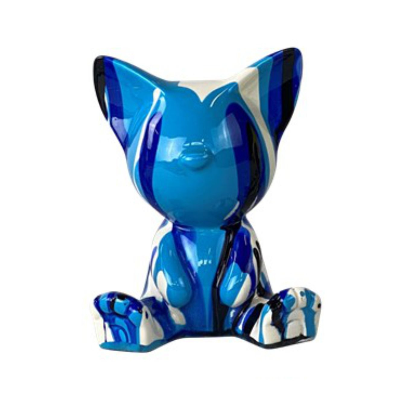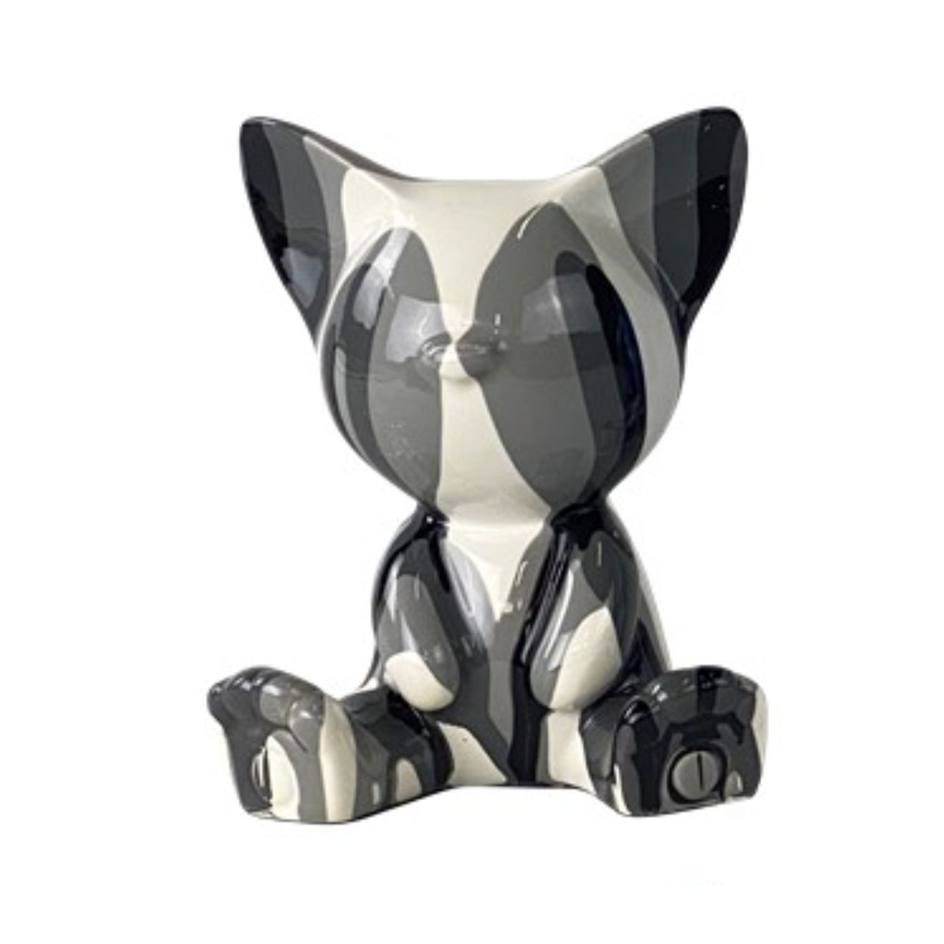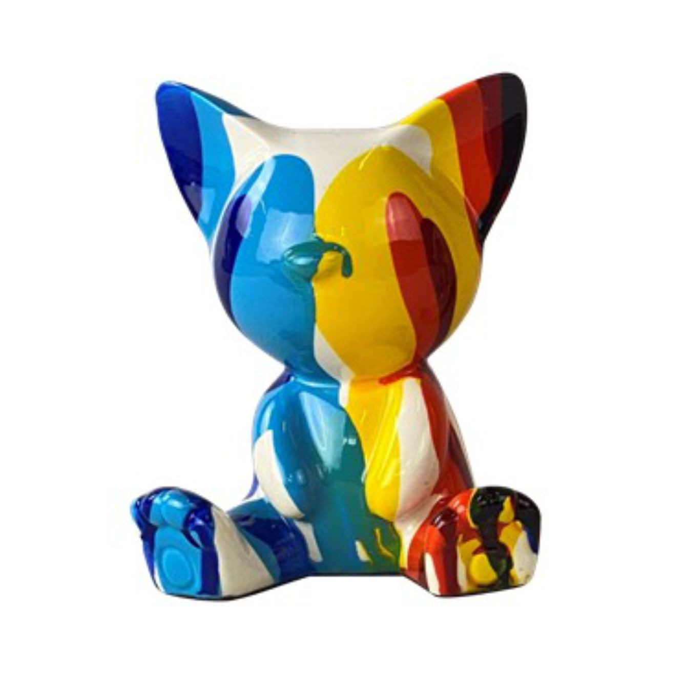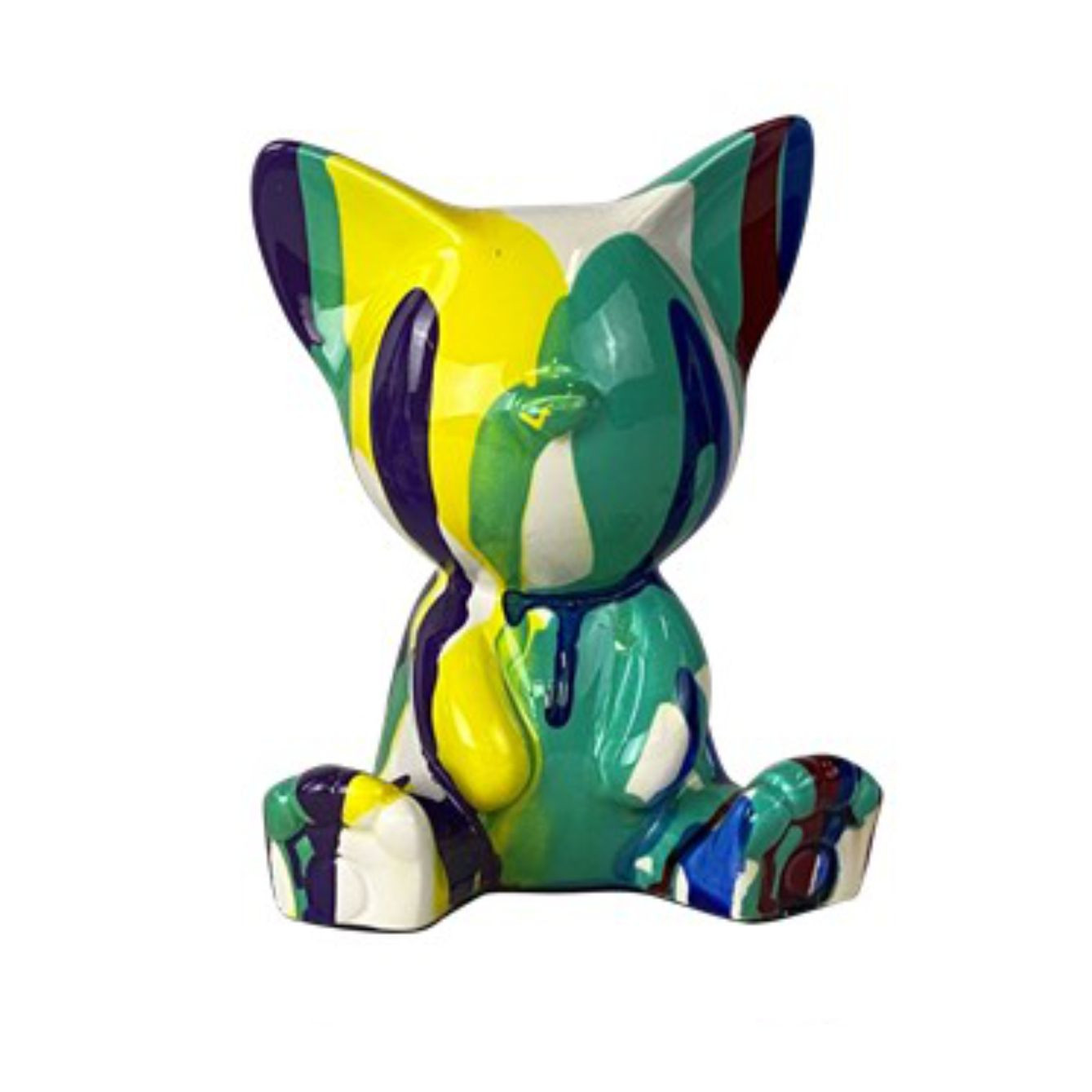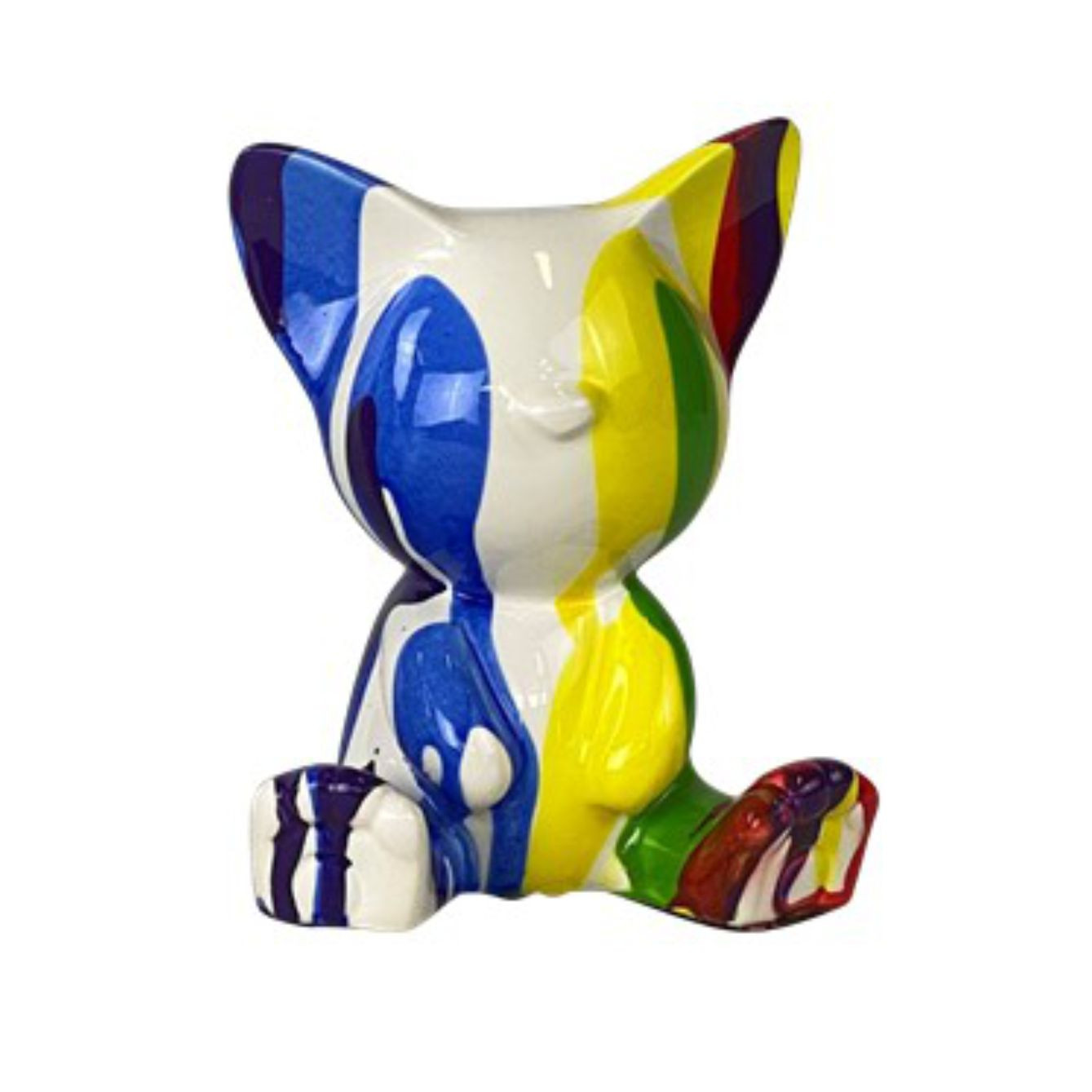 Oggetti di design in poliresina a forma di gatti con fantasia multicolor. Dimensioni: cm H.11xL.10