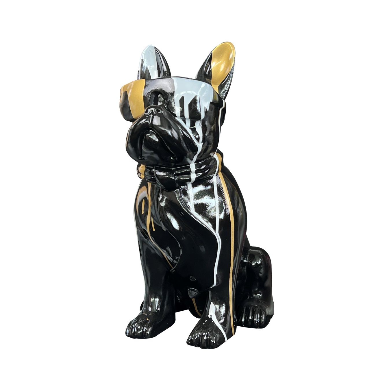 Oggetti di design in poliresina a forma di cani con fantasia multicolor. Dimensioni: cm H.37xL.19