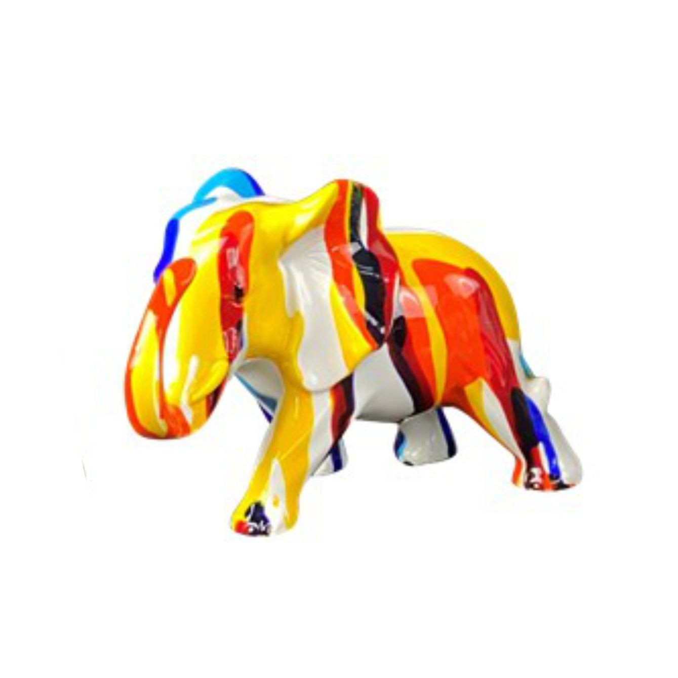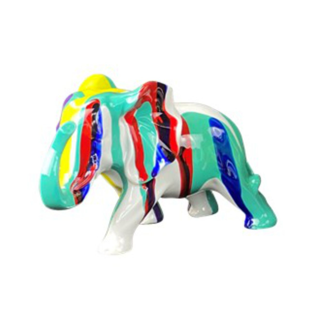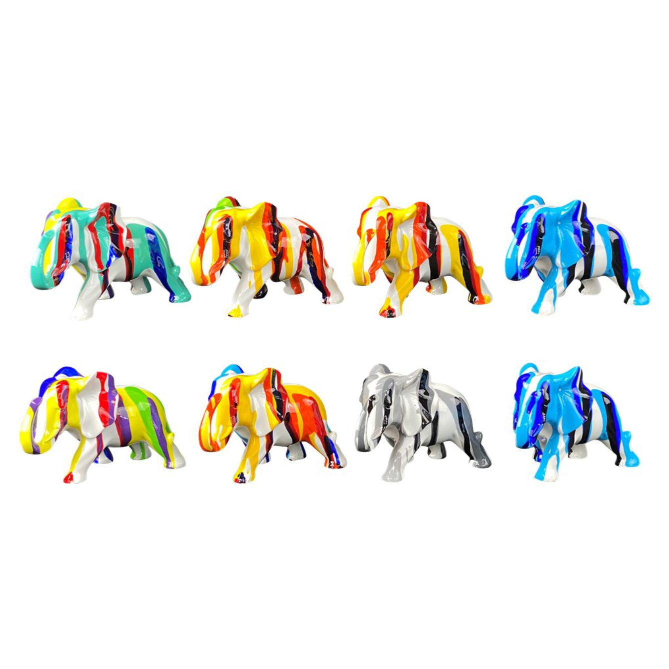 Oggetti di design in poliresina a forma di elefanti con fantasia multicolor. Dimensioni: cm L.10xH.8