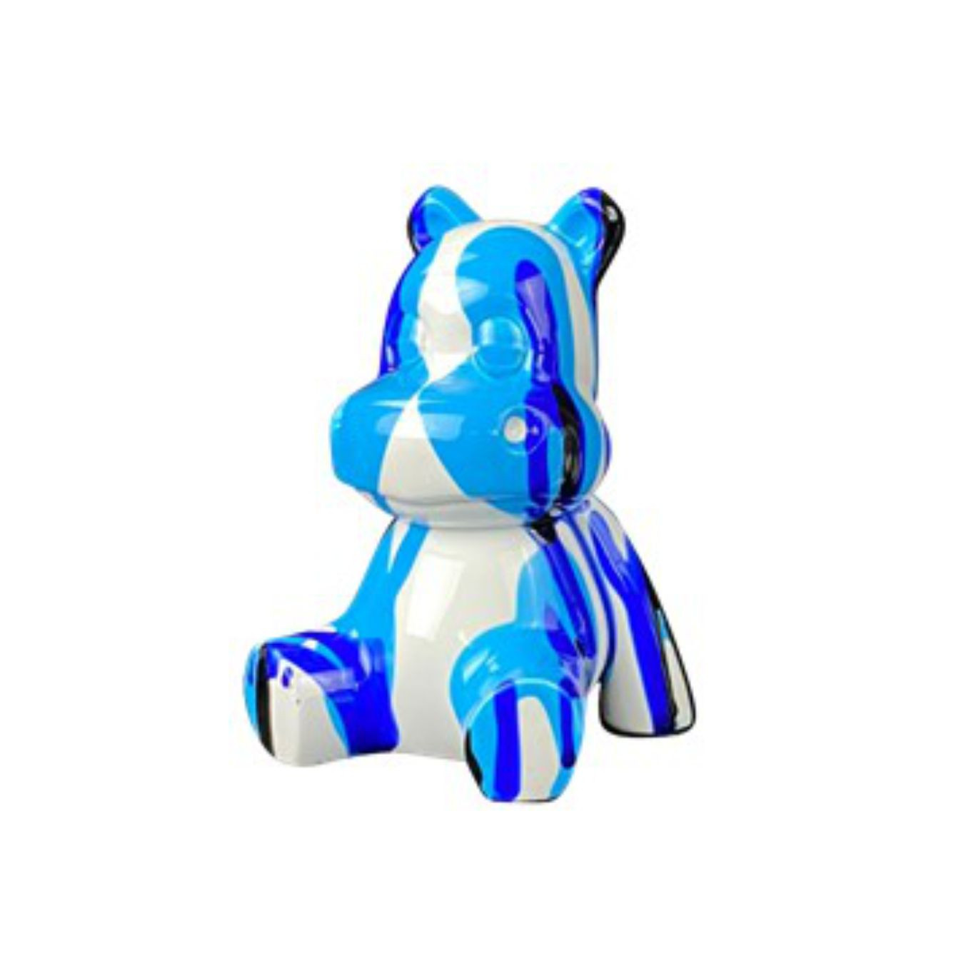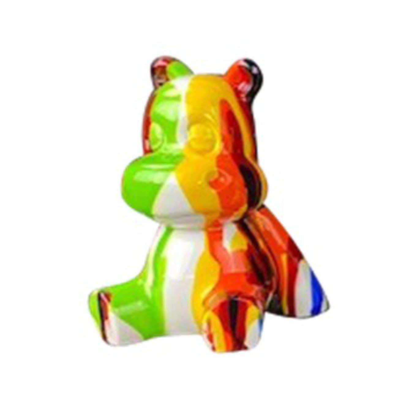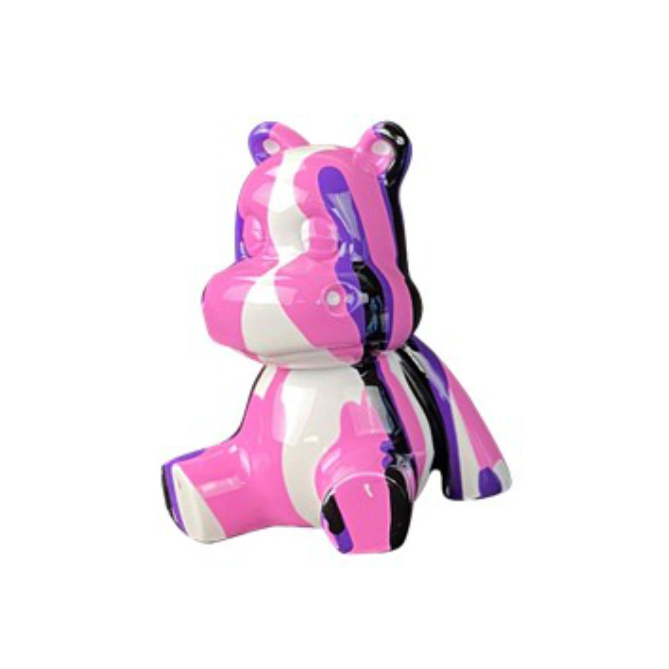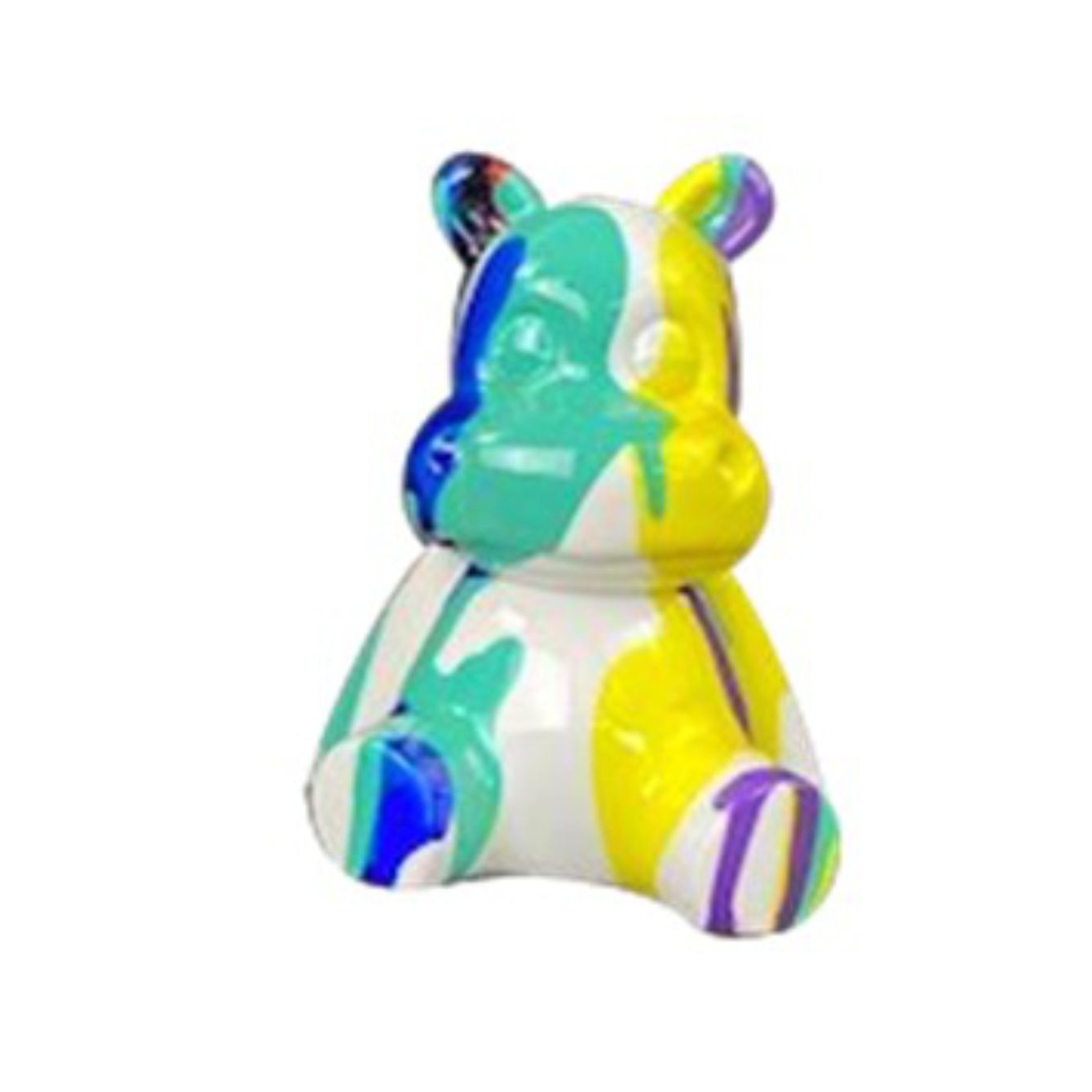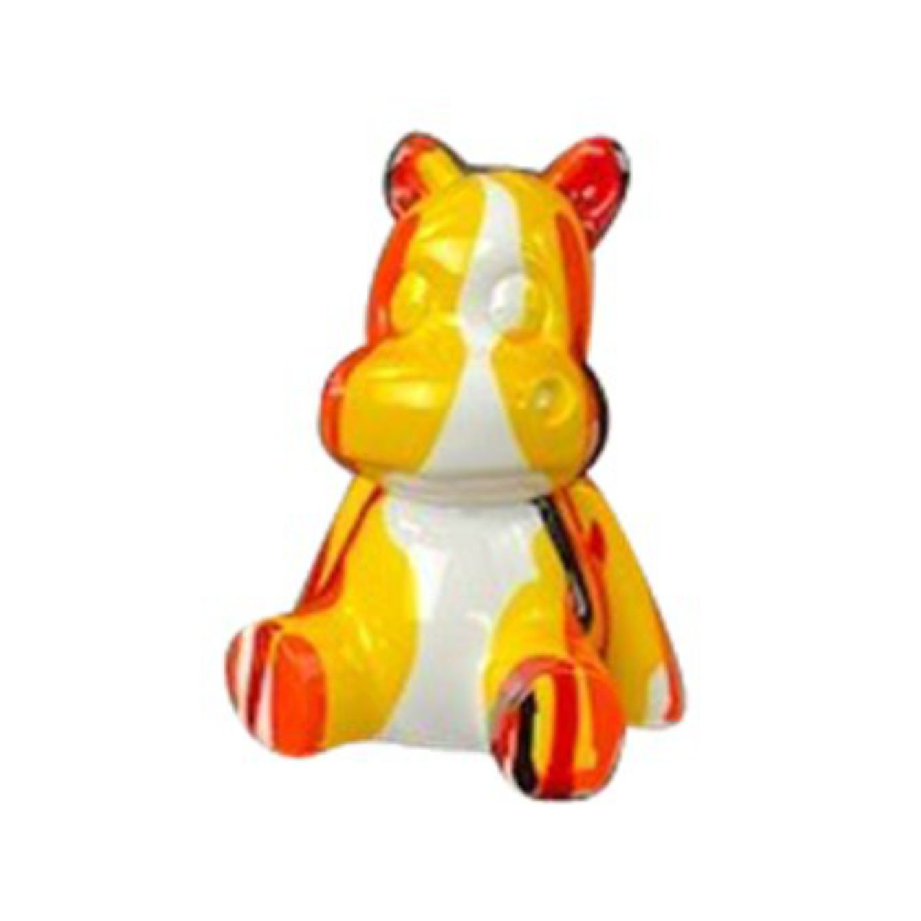 Oggetti di design in poliresina a forma di ippopotami con fantasia multicolor. Dimensioni: cm H.10xL.8