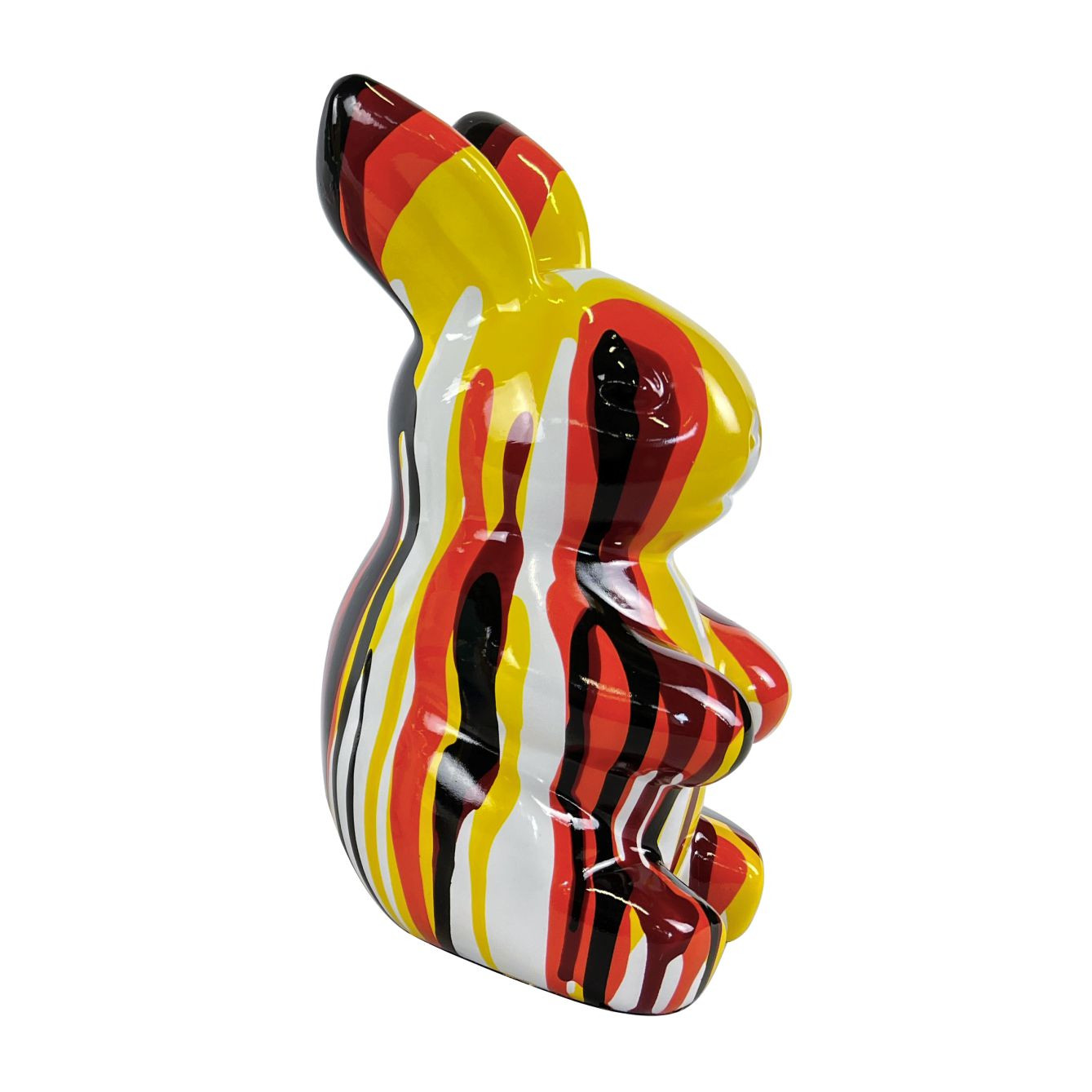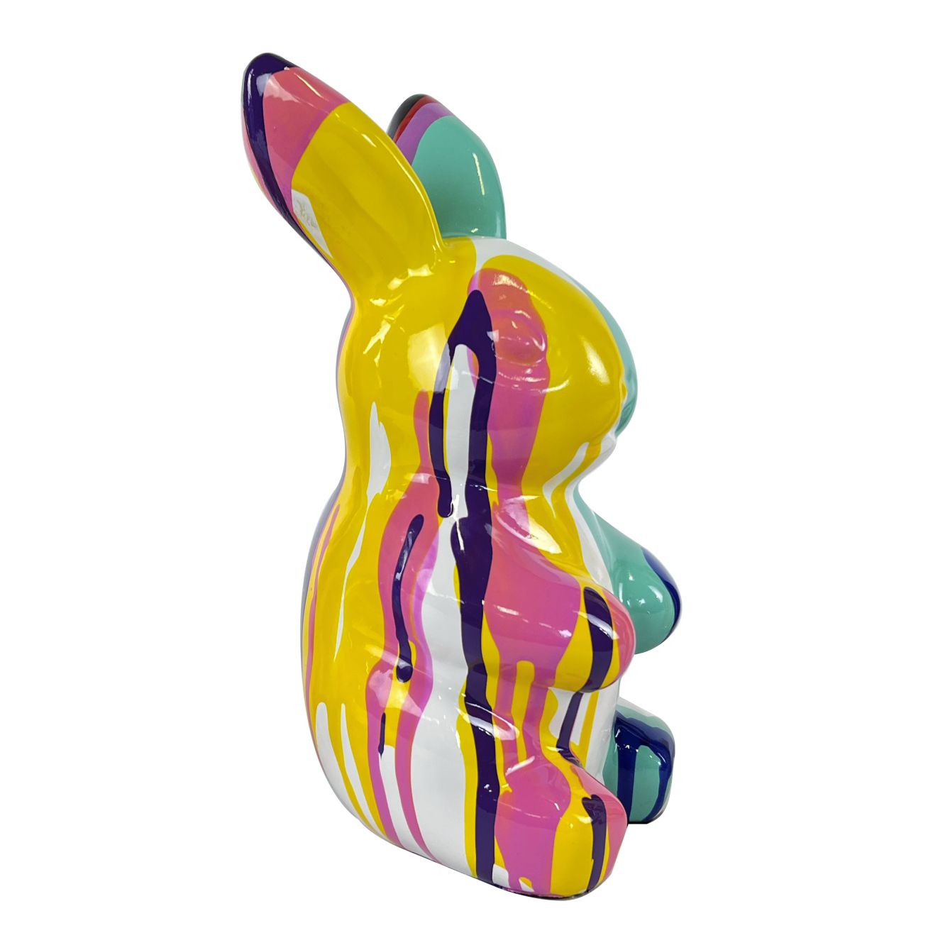 Oggetti di design in poliresina a forma di conigli con fantasia multicolor. Dimensioni: cm H.25xL.12
