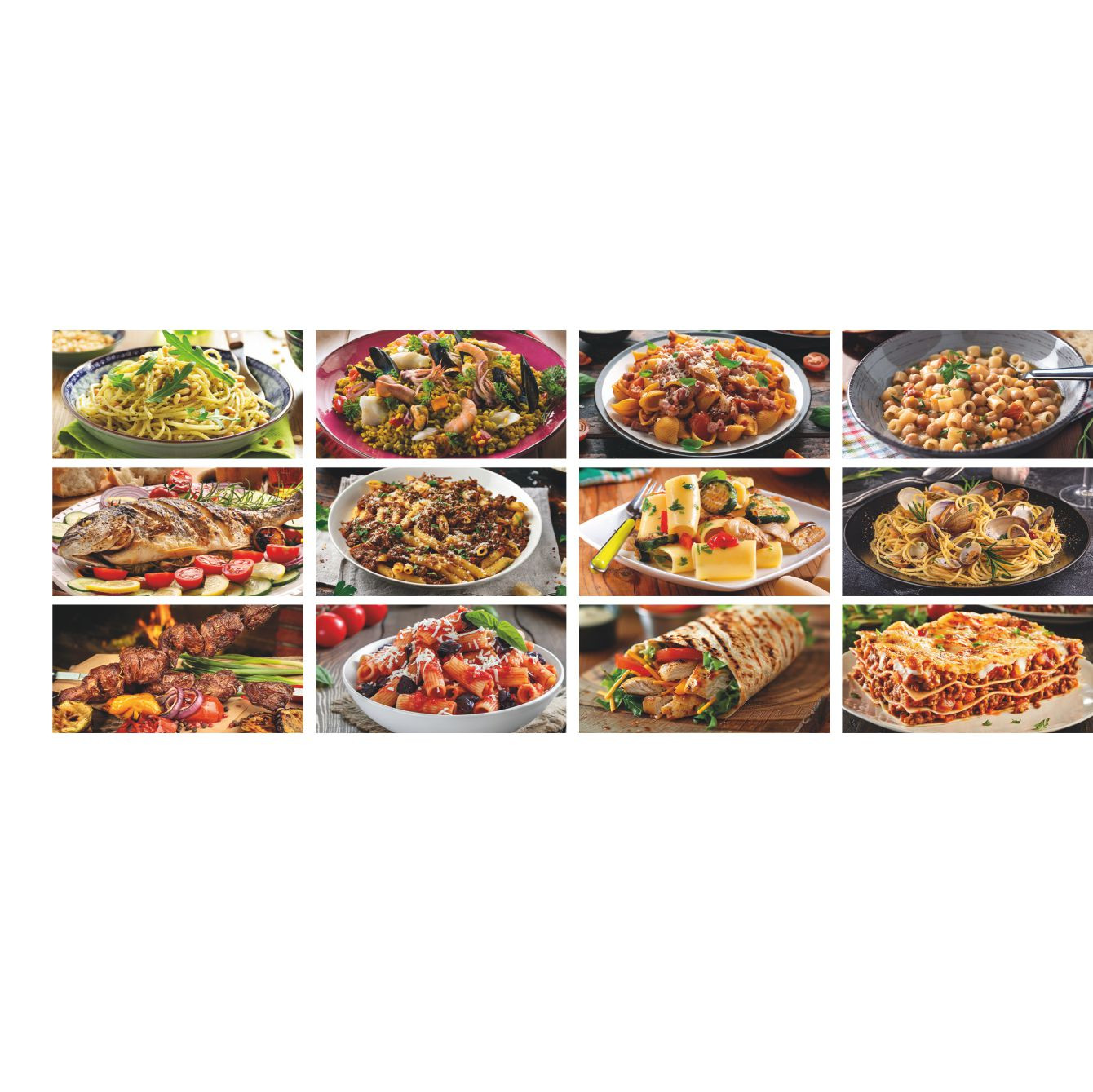 Calendario “Gastronomia.”. Trimestrale 12 fogli + retro. Testata pressofusa carta patinata. Dimensioni: cm 28,8x47, testata cm 28,8x9. Imballo: 100