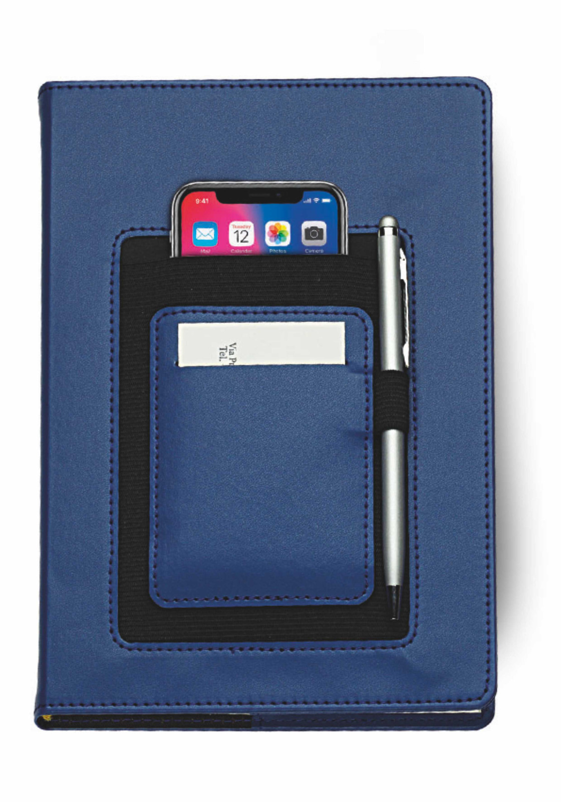 Copertina per agenda in PU termovirante con elastico. Vari scomparti esterni, p/cellulare, p/penna e p/card. Confezione in astuccio. Dimensioni: cm 16x22 Imballo: 30x colore