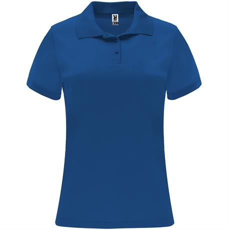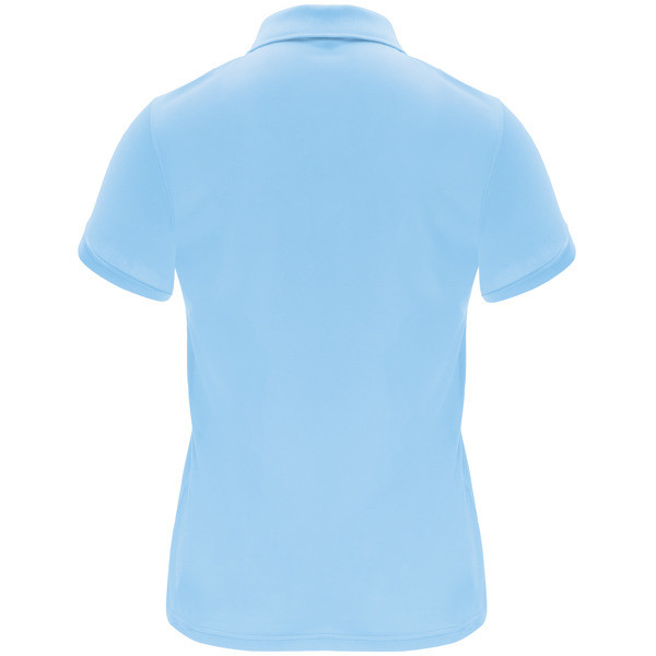 Polo tecnica con manica corta da donna. Collo tricot con chiusura a tre bottoni. Taglio sfiancato.