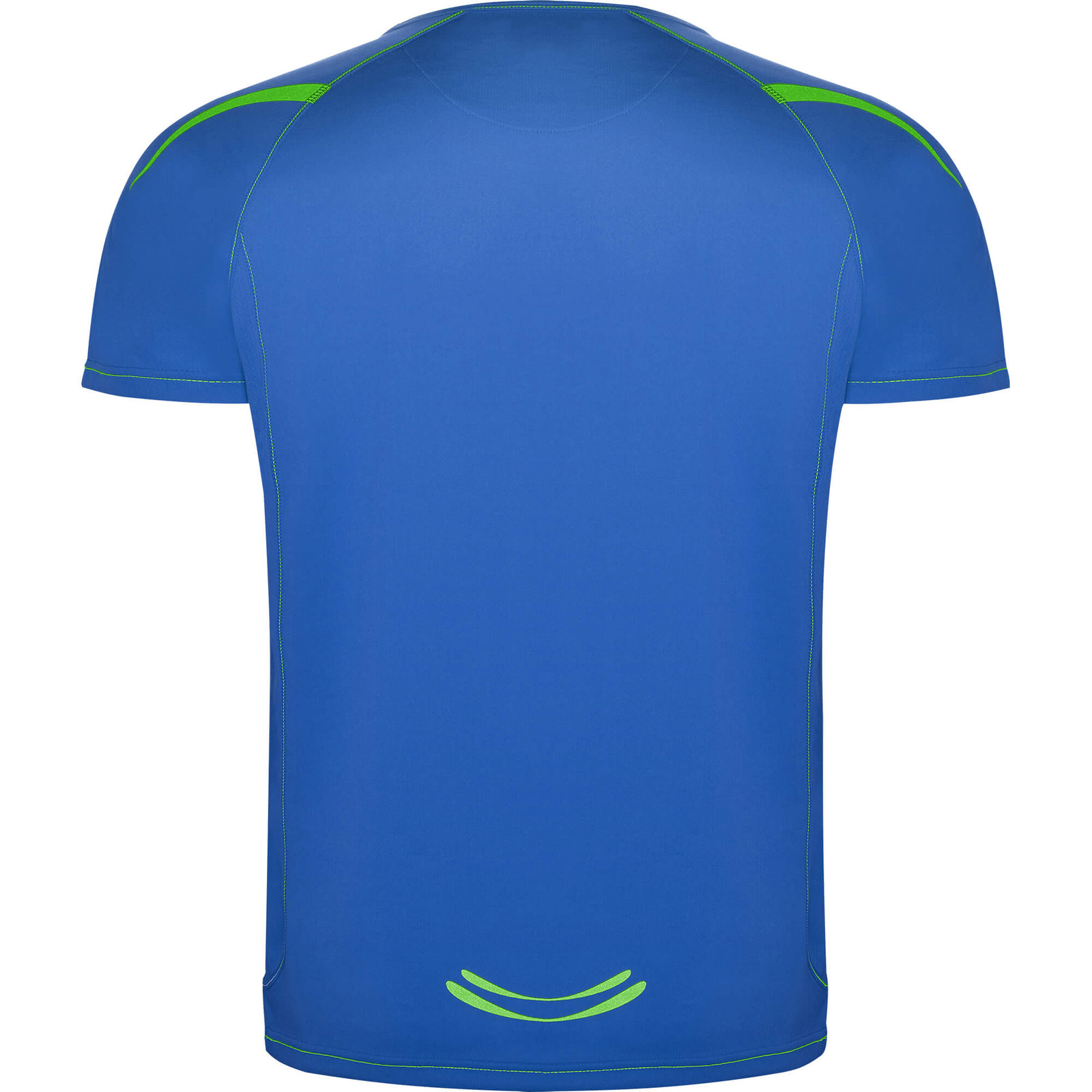 Maglietta tecnica manica corta raglan con doppio tessuto. 1.-Cuciture in contrasto su fondo manica, girovita, collo e fianchi. 2.-Collo in contrasto con lo stesso tessuto. 3.-Tessuto traspirante, di facile lavaggio e asciugatura rapida. 4. - Dettagli riflettenti, tranne nei colori nero e royal. In queste tonalità il dettaglio è in giallo non riflettente.