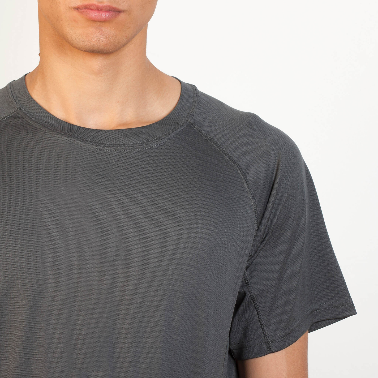 Maglietta girocollo manica corta raglan. 1.- Girocollo con cuciture rinforzate. 2.- Inserto laterale in tono.