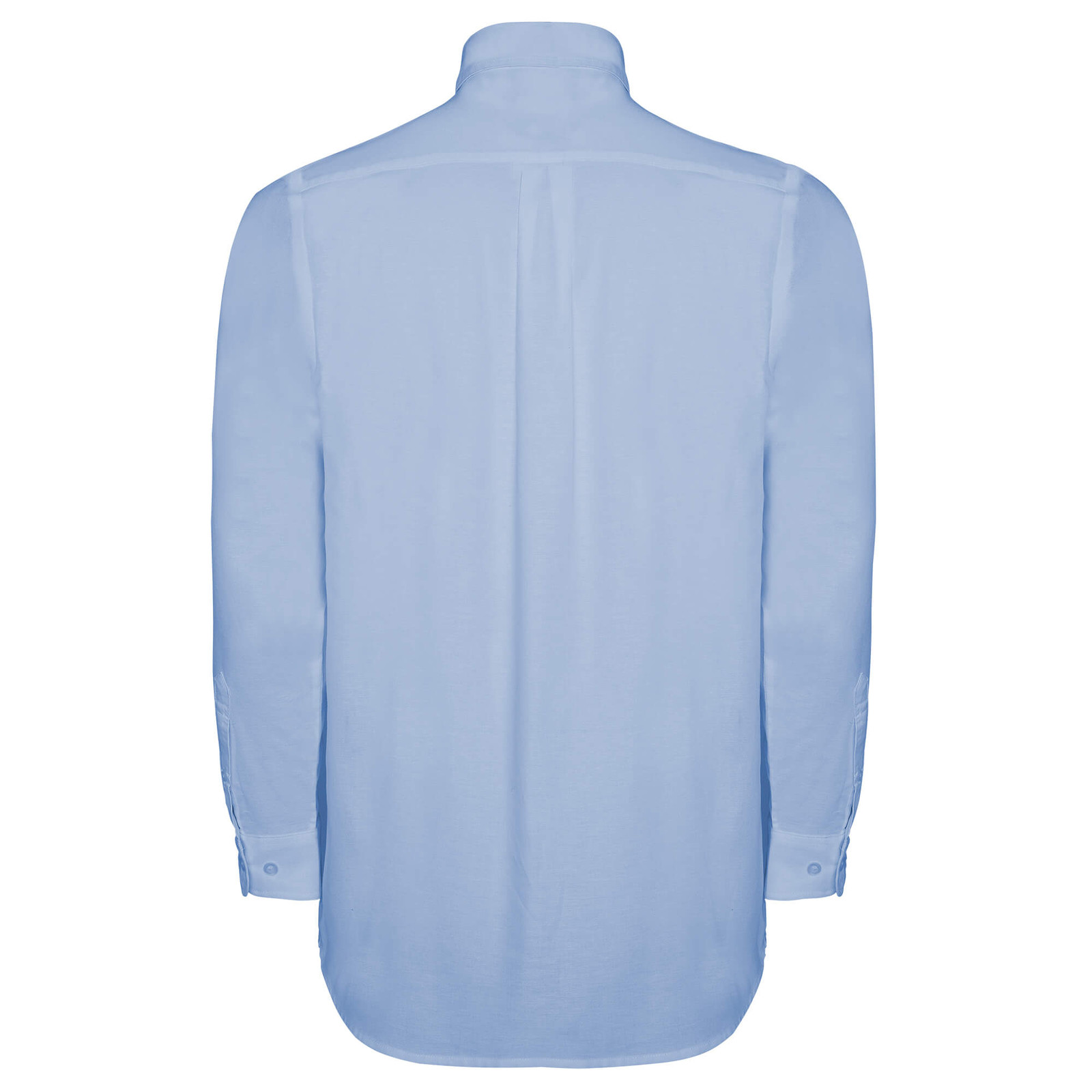 Camicia da uomo con taschino sul petto a sinistra. Abbottonatura con bottoni. Collo tipo smoking con bottoni. Polsino con due fascette. Piega sulla schiena.