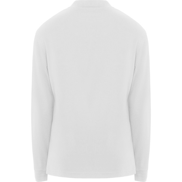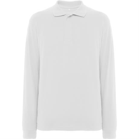 Polo a maniche lunghe. Collo e polsini a costine 1x1. Patta di chiusura in velcro. Copri cuciture rinforzato sul collo. Spacchetti laterali al fondo.